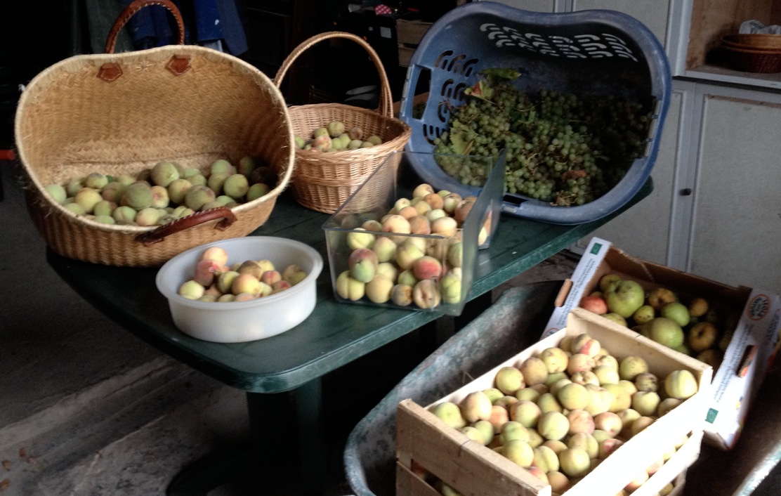 La Nature a été particulièrement généreuse en pêches en pommes et en raisin (celui-ci venant du jardin de Cécile, car la vigne de La Bertais a déclaré forfait cette année…)