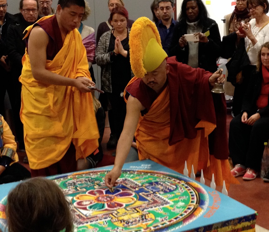 Puis nous avons pris part au rituel final qui a consisté, dans la même séquence, d’abord a honorer le Mandala par des offrandes et des prières…
