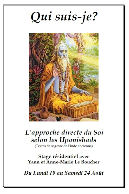 Cela fait quelques semaines que le gros livre 108 Upanishads est sur mon bureau… Impossible d’entrer seule dans un monument pareil. Pourtant chaque fois que les Upanishads sont citées dans un livre ou par un maître, je sens à quel point ces textes sont précieux. Ils sont fondamentaux au sens propre, ils sont le fondement de l’Advaïta Vedanta. J’avais besoin d’être guidée et le stage proposé par Yann et Anne-Marie tombe à pic. Je viens de m’y inscrire et j’ai pensé que peut-être d’autres parmi vous seraient intéressés….?