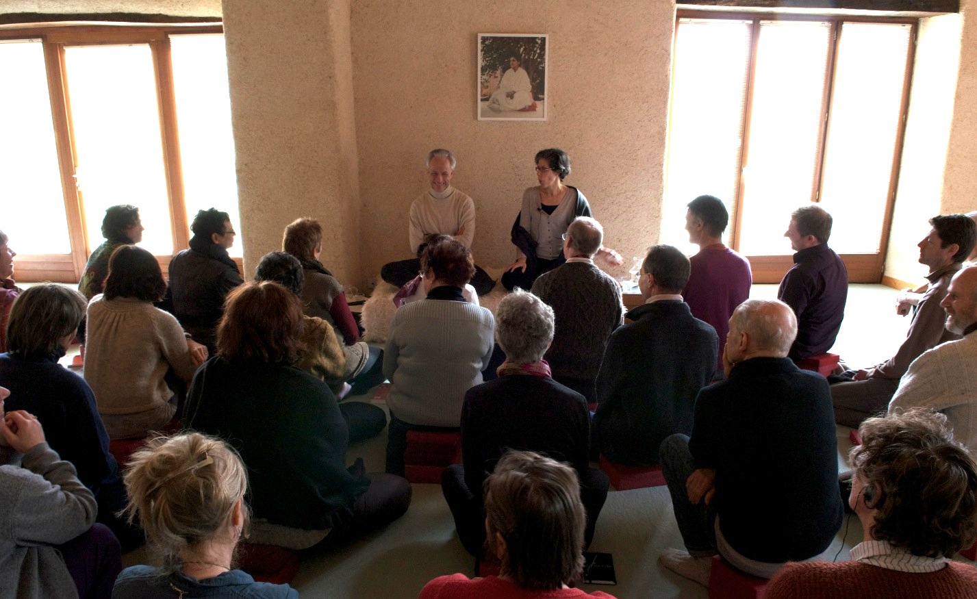 Les participants à ces méditations sont immobiles et recueillis, on devine que quelques-uns pratiquent leur japa à l’aide d’un chapelet. Mais l’accès est plus libre qu’à Hauteville, certains arrivent en avance, d’autres en retard, enfin plusieurs « sèchent» celle de 15h30.